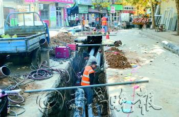 | ▲七里堡小区南区,施工人员正抓紧施工,保证居民按照协议供暖。