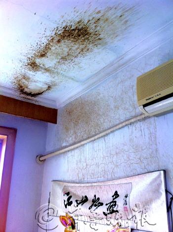 | ◥暖气管道爆裂后,猛烈的水柱把房顶都冲黑了。
