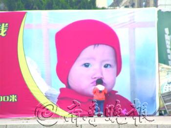 作品描述:广告牌里的小孩撅着嘴可爱极了,小姑娘忍不住就上去了。