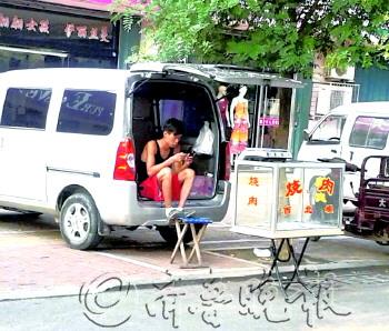 作品描述:玩会儿手机,收摊回家啦!