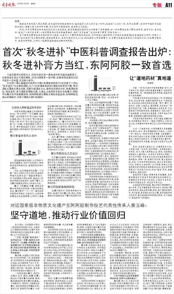 首次“秋冬进补”中医科普调查报告出炉:秋冬进补膏方当红,东阿阿胶一致首选