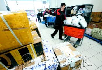12日,济南一快递公司投放点,工人们忙着卸货。 据了解,今天是第一波“双十一”的快递高潮,数量不算太大,比平时多七八成,明后天将是快递到件高潮。 本报记者 周青先 摄