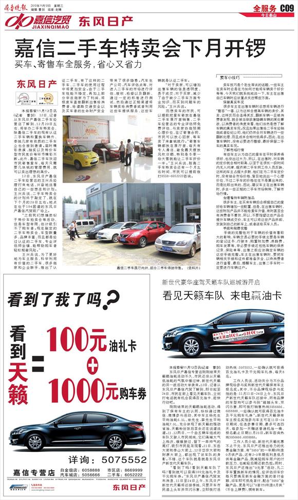 嘉信二手车特卖会下月开锣