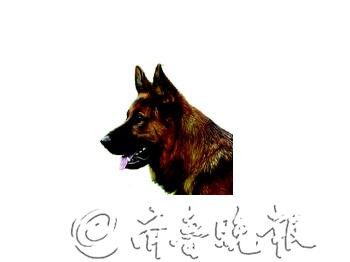 德国牧羊犬,是狗的一个品种,原产德国,具体的血统来源不明。唯一能够确认的就是,于1880年此犬已经在德国各地固定下来,并做为牧羊犬使用。它们敏捷且适合动作式的工作环境,经常被部署各种任务。后于第一次世界大战期间被德军募集,做为军犬随军。由德军取长补短培育后,基本定型。因为体型高大,外观威猛,并且具备极强的工作能力,因此在全世界范围以警犬、搜救犬、导盲犬、牧羊犬、观赏犬以及家养宠物犬等身份活跃。 一条好的德国牧羊犬给人的印象是:结实、敏捷、肌肉发达、警惕、且充满活力。非常平稳,前后躯非常和谐。体长略大于身高,身躯很深,身体轮廓的平滑曲线要胜于角度。身躯坚固而非细长,不论在休息时还是在运动中,给人的印象都是肌肉发达、敏捷,既不显得笨拙,也不显得软弱。理想的德国牧羊犬给人的印象是素质良好,具有无法形容的高贵感,但一眼就能分辨出来,不会弄错。性别特征非常明显,根据其性别不同,或显得雄壮、或显得柔美。 雄性的理想肩高约66厘米;雌性的理想肩高约60厘米。德国牧羊犬的体长略大于身高,理想的比例为10:8.5,身体长度的测量方法是从胸骨到骨盆末端,坐骨突起处。理想的身躯长度不是单由背部的长度提供,而是整体长度(匀称的比例,与高度协调),从侧面观察,身躯长度的组成包括前躯的长度、马肩隆的长度、后躯长度。 理想的狗有中等长度的双层被毛。外层披毛尽可能浓密,毛发直、粗硬、且平贴着身体。略呈波浪状的被毛,通常是刚毛质地的毛发,是允许的。头部,包括耳朵内,前额,腿和脚掌上都覆盖着较短的毛发,颈部毛发长而浓密。前肢和后腿后方,毛发略长,分别延伸到骹骨和飞节。缺陷:被毛柔软;丝状被毛;外层披毛过长;羊毛质地的被毛;卷曲的被;敞开的被毛。 从侧面观察,整个大腿组织非常宽,上下两部分大腿都肌肉发达,稳固,且尽可能成直角。上半部分大腿骨与肩胛骨平行,而下半部分大腿骨与上臂骨平行。跖骨(飞节与足爪之间的部分)短、结实且结合紧密。狼爪,如果后肢有狼爪,必须切除。足爪与前肢相同。 上臂与肩胛骨构成一个直角。肩胛与上臂都肌肉发达。不论从什么角度观察,前肢都是笔直的,骨骼呈卵形而不是圆形。骹骨结实而有弹性,与垂直线成25度角。前肢的狼爪可以切除,但通常保留。足爪短,脚趾紧凑且圆拱,脚垫厚实而稳固,趾甲短且为暗黑色。 头部主要包括眼、耳、鼻、嘴、牙及整体的搭配,也就是审查评语中常提到的“表情”。德国牧羊犬的头部大小适中(绝不是以大为好),头部的长度以体高的百分之四十为宜,额部的宽度与头的长度为一比二,不宜过长过细。鼻颈部与额头部等长,眼在中间高于鼻颈部,即眼的上方从侧面看要高于鼻颈的部分,前额与鼻颈处平直为缺点,犬的上下颌健壮有力。鼻梁上线前部略有隆起与上颌线平行。