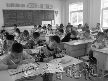 | 沣水三小五年级二班的孩子们在温暖的教室里写作业。 本报记者 罗旭君 摄 |