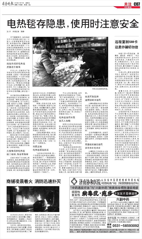 电热毯存隐患,使用时注意安全 文/片 本报记者 陈静