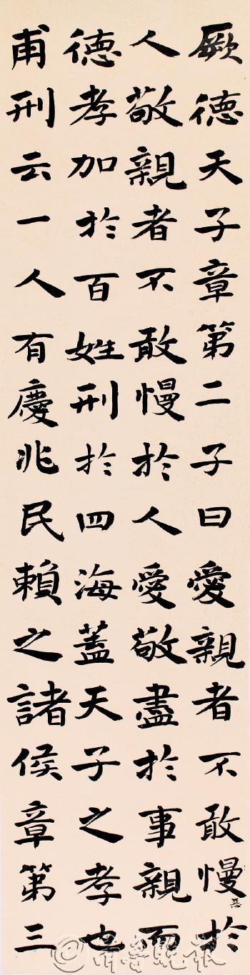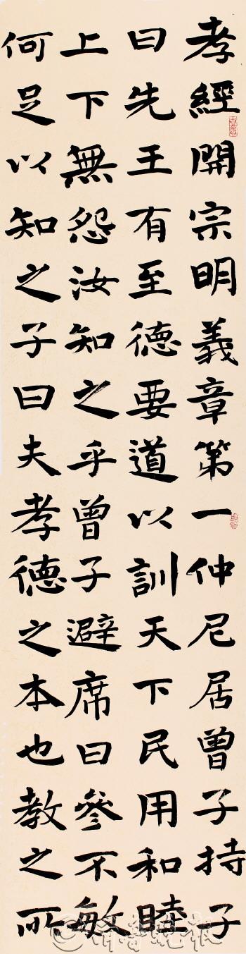 我的大字楷书探索之路 大楷这个书体自唐代以后渐渐被指定为一种成为定格的类型,欧颜柳成为妇孺皆知的范式,以至于从此以后每提及大楷便以唐楷作为典型。但是唐楷自宋代以来便被古人讥评“状若算子”,以至于有“丑怪恶札”等的说法。这自然与唐代楷书的应用场合有关,大多是在庄重严肃的地方书写的,自然要规范整齐、庄重一律。总的来说这种字体往往成为一种特别规格、难避刻板的样式了,后来出现了“馆阁体”以后,大楷这个字体更为文人所不取,更多地成为实用性的、应用到一些规范场合的地步了。所以到了当代,尤其是近二十年以来,以欧颜柳为主要代表的唐代楷书,逐渐退出了书法展览的视野,魏碑慢慢取代了传统楷书的地位。 但是魏碑的境况又是怎么样的呢?回过头去再看看碑学兴盛的清代,擅长魏碑书法的邓石如、赵之谦,他们的楷书也是没能逃脱唐楷的老毛病:整齐过甚、殊少变化。当前的魏碑书法创作当然也就是在这样的方式下不停的重复的,这是在变化不同的字帖来求得表面的变化,但是其内在的和外形的板刻一律依然不变。 拥有一千多年历史又在书法史上占有极端重要地位的大字楷书进入了一个尴尬的境地。但是毕竟楷书发挥了极其重要的作用,即使在今天,写好楷书不仅可以独立成为一风格类型,而且也是写好其他书体的必不可少的基本功练习,它的基本技巧和基本技法对其他书体有着不可替代的巨大作用。简单一句话:大楷依然是不可或缺的!作为一个专业书法工作者,不能不在大字楷书方面做出必须有的成绩。 面对这样的大字楷书的局面,就没有可以发挥的余地了吗?我一直在寻找出路。慢慢的,又找到了楷书的源头:钟王楷书。虽然那只是一些小楷,但是那可是以活泼多变、自然生动为其主要特色的。这应该是能够极大程度上弥补唐代楷书和魏碑的不足的。只是仍然要面对一个问题:小字机械的写成大字是不可以的,其中存在的大量问题不是可以一下子就能解决的,要不然早就应该有人在此一展身手了。 于是在读研究生期间,先把大量练习钟王小楷作为一个重要的突破口,在有了数以千计的小楷练习——也就是有了较为熟练的小楷书写能力之后,开始对此进行逐步的改造。这个过程仍然要借助唐楷——欧颜柳的优点要被不同程度的吸收进来。欧的严谨、颜的厚重、柳的刚健,都是很好的部分。当然也不能是机械的组合,不能是按比列的加进。仍以钟繇小楷《宣示表》作为主体,在笔法、结构和章法上尽可能的追求变化,不再呆板一律、毫无生气,尽可能地力求生动自然、活泼多变。 这是我近几年在大字楷书上所作的一点探索性的工作,这个思路是否可行,还要进一步到社会上接受检验,既要让专门的书法家们觉得这是符合书法规律的,也要尽可能地让社会各个阶层的人们喜欢这个风格模式。这只是个开始,路还很长,既然走到了今天,留给我的,就是一条:坚定的走下去! 我在期待着道友、专家和喜爱书法的朋友的指教和建议。 (袁宗玉) ◇袁宗玉 又名袁宗愈,1993年毕业于山东师范大学中文系;2012年毕业于首都师范大学中国书法文化研究院,获文学硕士学位;现为中国书法家协会会员,任教于北京城市学院。先后在《中国书法》、《书法报》、《书法导报》发表《米芾书法收藏的品味》、《书风演变与时代兴衰》、《书法的艺术身份》、《兰亭论辩的再思考》等十余篇论文。 ▲《孝经》之开宗明义章第一、天子章第二 178x48cmx3 ※知识链接 《孝经》是孝道的理论总结,是古代“五经”的总纲,“六艺”的根本。书法家袁宗玉在2008年手抄《孝经》,把自己的书法个性和书韵内涵与《孝经》博大精深的孝道伦理联系起来,是中国古代儒家伦理经典和书法艺术的有机结合。此篇书法共19章,分为28屏,共长约20米,行文疏密得当,结构完整,字体笔画简爽,形体优美,柔婉风姿下暗藏着修身、齐家、治国平天下的“大义”,不但显示了《孝经》深厚道德的内涵,也成为袁宗玉书法艺术的优秀载体。 “孝”作为中华民族的传统美德,是中华民族有别于其他民族文明的重要标志。“书,心画也”,书法家掌握书法运笔勾勒线条的能力固然重要,但在当下来说,书法艺术的功效还不止于此。袁宗玉书写《孝经》,以其独具的艺术表达方式及感染力,去准确表达和传播中国传统文化的精髓,不但是对孝文化价值的重现,表达他对中华民族文化的虔诚与热爱;还以书法艺术的探寻为契机,加深了人们对民族优秀文化的了解,在观者对他的书法艺术惊叹的同时,挥发了艺术的育人之功效。