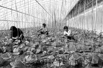 | 在前绪密现代农业大棚里,农民们正在劳作。 本报记者 彭彦伟 摄 |