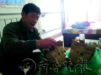王新中在整理妻子服用的中药。本报记者 王倩 摄