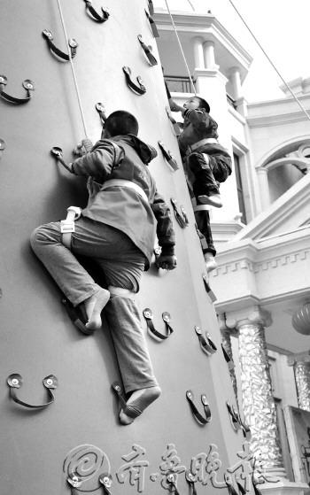 | 一组小记者正在攀岩。 |
