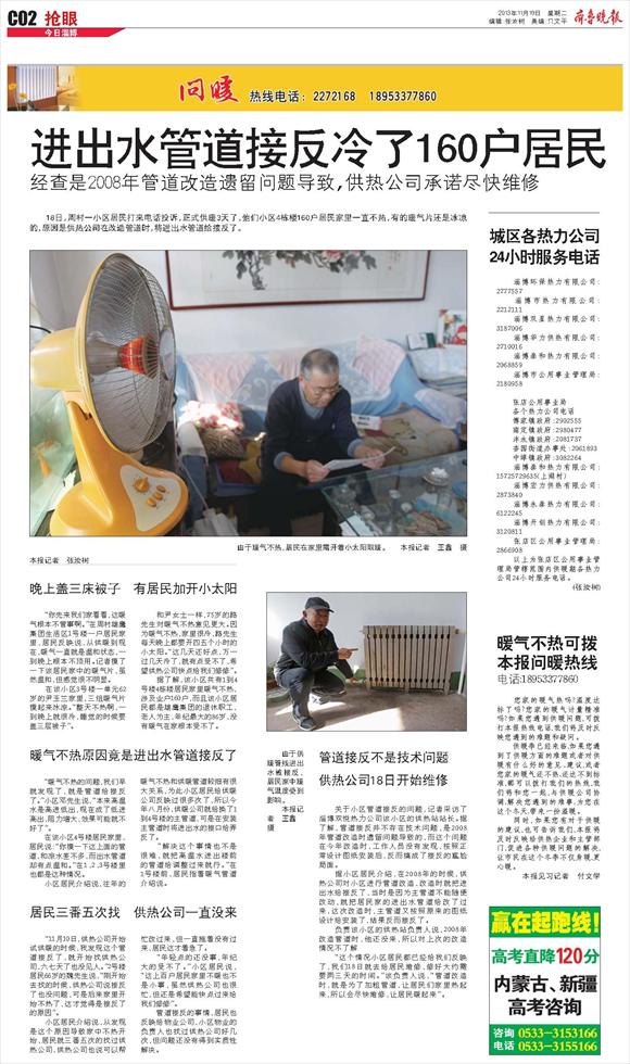 暖气不热可拨本报问暖热线