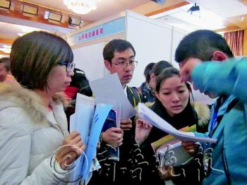 11月20日,由清华大学、山东省人才工作领导小组共同举办,山东省委组织部、山东省人力资源社会保障厅承办的首次山东省高层次人才招聘会在清华大学举办。117家招聘单位引来5600多名学生应聘,在招聘单位收到的简历中,博士和硕士占了近九成。应聘者中,山东籍的老乡超九成。 本报记者 尹明亮 多数山东籍学生希望回家乡工作 20日,在清华大学工会俱乐部,从9点起整个上午,几十米长的学生队伍一直沿路边延伸着。在首次山东省高层次人才招聘会现场,由于应聘者众多,只能分拨安排学生进场。记者采访发现,在长长的队伍里鲜见外省人的身影,几乎清一色的山东老乡。“或许是山东的学生太多了吧,大家也都恋家,希望回老家工作。”北京化工大学的任璐已经排了一个多小时的队。 从上午9点到下午3点,在拥挤的人流中,招聘会一直在紧张进行,各个单位招聘人员最大的感触也是山东籍学生多。“也有河北、河南等周边省份的学生,但九成五以上是山东籍学生。”在山东鲁信投资控股集团有限公司展位前,中午不到,就已收到300余份简历,也少见非鲁籍学生。 “基本上都是山东籍的学生,一上午印象中没遇到几个其他省份的学生。”到中午12点左右,山东省质量技术监督局已收到简历200多份,其中也多数是鲁籍学生。“山东学生多倒没什么不好,不过还是头次感受到山东孩子的故乡情结这么强。”工作人员感慨道。 “和同学交流,多数同学还是希望回到山东工作,这次集中招聘是次比较好的机会,但平常由老家政府带头搞的这种招聘会还是有些少。”西安电子科技大学学生王华楠与同学连夜赶到北京,也是为了能搭上这班能回山东工作的顺风车。 博士硕士多,名校本科生成香饽饽 “其实除了山东学生多,再有个特点就是研究生多,有180多个学生简历上都写着硕士学位。”在山东省质量技术监督局的展位前,工作人员说。 应聘学生共5600多人,有的学生投出多份简历。参加招聘的117家单位最终收到的简历数量共有10082份,其中硕士6981份,博士2031份,本科1070份。据介绍,这样的比例构成与招聘会定位于招聘高端人才,所设岗位也多要求博士硕士有关。 “想招个名校名专业的本科生也确实不容易。”山东省建筑设计院的一位工作人员说,本来冲着清华大学的建筑类专业来招人,但在收到的50余份简历中,清华大学的学生只有两三个,而本科是清华的学生却一个没有,“院里已多年没招到清华的毕业生了,今年如果能招一两个也算不错了。” “应聘的学生挺多,但要想招名校名专业的本科生其实还真难,都得早点抢。”采访中,数位招聘人员都十分感慨。