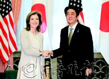据日本《读卖新闻》20日报道,日本首相安倍晋三当天在首相公邸会见了前来拜会的新任美国驻日大使卡罗琳·肯尼迪,并破例留卡罗琳吃了午饭,这一罕见的举动引起了日本多家媒体注意。《读卖新闻》分析称,安倍此举显然含有通过展示日美亲密来钳制中国的目的。