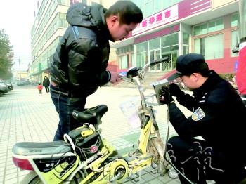 自11月4日,牡丹区电动车打码已实施半个月,仍有不少市民不知此事。20日上午,记者来到位于西安路与中华路交叉口的打码处了解到,截至20日上午9时30分,牡丹区已有2万余辆电动车打码完成。在白天设点打码,晚上进小区打码的工作下,牡丹公安分局南城派出所所长王献平认为电动车打码工作仍需要大力宣传,让更多的市民解除疑惑。图为工作人员正在为电动车打码。