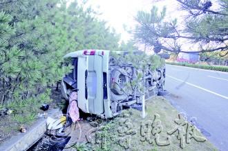 20日早,一辆金杯轿车行至威石路文登营镇一弯道路段时,强行超越前车。期间,司机操作不当,致车辆失控侧翻进沟中。