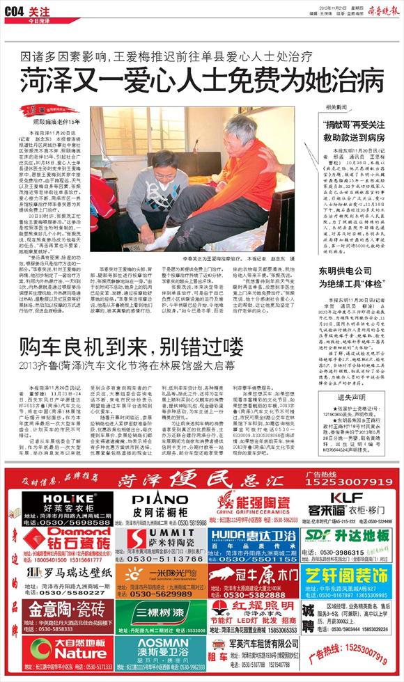 菏泽又一爱心人士免费为她治病