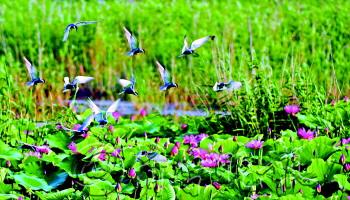 文/本报通讯员 褚新 陈雷 揽千年大运河入怀,拥黄河母亲入梦。这是亚洲唯一的河湖交融型湿地。一把土琵琶,弹唱着中国南水北调东线工程的调水节奏。满船荷花香,将那段红色的历史和渔家文化承载。退渔还湖,让水质更清澈。深入微山湖湿地,才看得清中华民族文明的源远流长。 这是在《美丽中国·魅力湿地》中国十大魅力湿地颁奖典礼上,中央电视台给予微山湖国家湿地公园的颁奖词,它是我省唯一获“中国十大魅力湿地”称号的湿地。 置身湿地中,满眼尽是芦苇摇曳、万鸟齐翔,一切都是那么原始、淳朴,秀美的景色不仅吸引了200多种鸟类前来安家落户,经天然净化后的湖水,还使绝迹多年的毛刀鱼、小银鱼、鳜鱼等鱼儿重返家园。 建设中的微山湖国家湿地公园,位于微山县城南侧3公里,总规划面积15万亩,是以微山湖湿地生态系统和历史文化为主要资源,以湿地保护、科普教育、水质净化、生态观光为主要内容的大型公益性生态工程。 微山湖风景秀丽,她的万顷荷塘,堪称世界之最;她的富饶物产,可谓日出斗金;她的渔乡风情,独具湖区魅力;科学的管理与保护,正让她焕发出愈加迷人的风采。