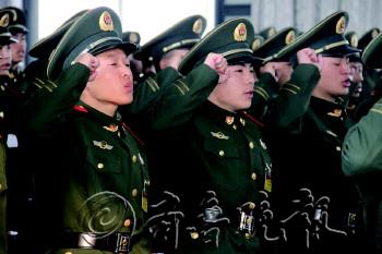 21日上午,武警菏泽支队举行2013年度秋季入伍新兵授衔宣誓大会,标志着新兵正式成为一名光荣的武警战士。数百名新兵进行了入伍宣誓,支队长从珍惜荣誉、严格管理、刻苦训练等三方面向新兵们提出了希望和要求。