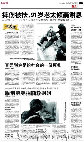 | |  | 刘健询问受伤老人的伤情。 (资料片) |
