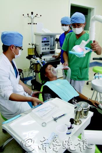 本报讯 提到拔牙,不少市民的第一反应就是疼痛,注射麻醉药的过程让人不寒而栗,因恐惧而贻误正常治疗的患者不在少数。而昨天,在市口腔医院无痛诊疗中心,在笑气麻醉机的帮助下,口腔专家为6岁的岛城男孩张耀明实施了一次没有疼痛的拔牙。据了解,市口腔医院成立岛城首个口腔无痛诊疗中心,引进了笑气镇静镇痛系统,患者只需吸入含有镇痛作用的笑气,就可以在轻松、无痛觉的状态下完成拔牙、种牙等治疗。 现场:戴“氧气罩”闻甜味 以前拔牙,都是医生拿出一根针扎到自己的牙龈上,而这次医生拿来了一个像氧气罩一样的东西,对张耀明说:“阿姨帮你戴上,你就像平常一样呼吸就可以了。”戴上“氧气罩”后,明明就闻到了一种略带甜味的气味。大约过了一刻钟,医生为他摘下了面罩,开始拔牙。尽管医生拿出了器械在明明的嘴里“忙碌”着,可这次他却没有感觉到一丝难受的疼痛。直到医生轻轻地跟他说:“好了,孩子,拔完牙了。” “孩子刚才说戴着上面罩闻到淡淡的甜味,那是一种特殊的气体,叫笑气。”市口腔医院无痛诊疗中心专家说,以往口腔手术都直接注射麻醉药,许多患者特别是儿童在看病的时候会不由自主地出现紧张或者恐惧的情况,使本来很简单的治疗变得复杂。针对这一情况,该院引进了一种新的仪器——“笑气麻醉机”,通过笑气麻醉后,再接受注射麻醉就不会有疼的感觉了。 “笑气”学名氧化亚氮,是一种无色有甜味的气体。通过氧气和氮气的混合气体的药理性作用,用来抑制人体中枢神经系统兴奋性物质的释放,改变离子通道的通透性而达到镇痛的效果。人吸入笑气后,对呼吸道无刺激,在体内不经过任何生物转化或降解,是一种安全的吸入麻醉药,吸入“笑气”可以消除患者的恐惧。患者在停止吸入笑气后,它会通过呼吸的过程将其呼出,少量的则会通过人体皮肤蒸发。 调查:推出无痛口腔诊疗 笑气镇痛的过程非常简单。只需患者在拔牙前戴上装有笑气的呼吸器,通过鼻腔吸入,就能在较短的时间内达到镇痛的效果。整个过程一般只需3-5分钟,而拔智齿时吸入笑气的时间需要15分钟。“笑气麻醉机”主要适用症包括对口腔治疗有焦虑恐惧的患者;操作复杂的阻生牙、多生牙拔除及种植牙的患者;不配合治疗的儿童患者;对口腔治疗咽部敏感的患者;要求舒适化治疗的患者。从补牙、拔牙、镶牙、洗牙、矫形、种植等一般牙科治疗到口腔手术,完全可以实现无痛化、舒适化的医疗。 口腔医院无痛诊疗中心不仅有笑气镇痛,还有静脉药镇痛、口服药镇痛及全身麻醉等镇痛方式,可以满足各种对口腔治疗恐惧的病人。临床经验表明:绝大部分(年龄大于三岁半)可以接受笑气镇痛。极少数患者通过口服或静脉给予镇静、镇痛药,待病人镇静安定后再进行口腔治疗;对于极少数自闭症或智力障碍的患儿,无痛诊疗中心建议患儿先住院,在全身麻醉下让其接受无痛苦、安全舒适地治疗。 (本报通讯员 张红艳)