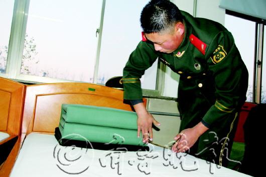 梦里的训练 19日中午时分,记者到达武警三中队时正赶上午饭时间。跟着指导员赵向南和中队长秦勇来到院内,士兵们早已集合完毕。秦勇走到队伍面前,仔细打量了一番,没有说话。25日,这35人的队伍中,有18人就要退伍离开。虽然已送走过多批退伍老兵,但秦勇还是无法习惯离别,每当这时心里都有一翻说不出滋味。 秦勇微微点头,战士们迈着整齐的步子,喊着口号走向餐厅。像往常一样,吃饭前他们要唱军歌,歌很短,只有二三十秒的时间,大家却唱得很卖力,好像恨不得喊破自己的喉咙。午餐五菜一汤,还有水果,然而丰盛的饭菜却没有引起士兵们多大的兴趣,大家闷闷地吃着馒头,没有多少交谈,房间里有种莫名的凝重感。 饭后,大部分士兵渐渐散去,有几个却悄悄留了下来帮着餐厅师傅一起打扫。秦勇说,他们不是在值班,他们都是今年要退伍的老兵,再过几天就要离开。 在水池旁默默洗刷碗筷的战士叫王海,虽然今年只有23岁,干活却很麻利,手中的抹布不停地在餐盘间旋转。入伍前的王海,曾干过销售员、学过计算机,虽然在社会上历练了几年,但当兵的诱惑还是让他心动。终于在2011年,王海瞒着父母报名参军,转眼间两年过去了。王海说,这几天晚上做梦,梦到的全是战友们一起训练、一起打闹的场景,有时走在院子里,看到头顶上飘扬的国旗,心里就会突然有种莫名的酸楚。说到这儿时,他嘴角有些抽搐,低头沉默了一会儿,等抬头时,眼睛已变成血红色。 离前的执勤 还没等他们收拾完餐厅,四个穿着军大衣的战士从外进来,脸冻得通红,他们是刚从哨位上执勤回来,还没吃饭。由于武警三中队看管滨州最大的看守所,全天24小时进行站岗执勤,使命神圣。王海告诉记者,全中队共有四个哨位,其中两个需要战士到岗楼上执勤,每两小时一轮,一天一般能轮到两次。下午,他也要到岗上去。 当天下午,记者跟随战士朱进京,来到院子西北角的岗楼。岗楼高约10米,楼下的铁门被紧紧锁着。朱进京从科室领到钥匙后,将楼下的铁门打开,顺着螺旋状的楼梯,爬到塔式的楼顶。进行简单交接后,而被他替下来的战士,将钥匙拿回,临走前,又把通往楼上唯一的铁门紧锁。接下来两小时,朱进京将一直面朝东北方,注视着一个关押几百人的看守所。 看守所四面高高的围墙,墙体上嵌着刀锉,周围静悄悄的,安静地让人有些不适,然而这一切对刚过20岁的朱进京来说早已习惯。寂寞时,他轻声哼唱一段小曲给自己解闷,有时,从看守所内传出的声音,也让他兴奋。两年来,在岗楼上最多的时候还是在回忆与畅想,回忆过去畅想未来,反反复复不知多少遍。再过几天,他真的就要离开这里,返回河南商丘老家。虽然,平时也曾抱怨过枯燥的军营生活,但一想到离开,心里还是有点难受。就连这个讨人嫌的岗楼,此时也变得如此的可爱。 最后的糕点 像王海、朱进京这样的退伍老兵,三中队有12人,这段时间,他们正各自以不同的方式与战友们话别。 记者走进二班寝室,正碰上于珍铭正拿着笔将自己的名字签在战友王帅民的迷彩服上,看到有人进去,他们不好意思地连忙将衣服收起。于珍铭说,他与王帅民是同年兵,感情很好,两人本来今年一起退伍,但王帅民成功留队,即将分别,他们互相在迷彩服上留下姓名以作纪念。 18岁的孟阳,刚刚入伍一年,现在炊事班当一名厨师,这几天,除了给退伍老兵们做好饭菜外,他还盘算着买点纪念品送给战友,留作纪念。19日晚,战士们吃完饭后,孟阳和师傅杜雪亮忙了起来,他们打算为退伍老兵们做些糕点,为他们饯行。杜雪亮在部队呆了八年,虽已不在炊事班工作,但还经常到厨房帮忙。这次,是退伍老兵们最后一次吃他做的糕点,所以他做的格外认真。从作料到烘焙,整个过程需一个多小时,而且做工复杂,师徒两人虽然很累,但心里却很乐呵。 记者回到接待室,看时间还早,又与多名要退伍的老兵闲聊起来,谈话间能感受出他们那份不舍。他们都在嘲笑即将退伍的张汝涛晚上做梦时,喊出对部队不舍的话语,但玩笑过后是一阵沉默,刚才的嬉皮笑脸瞬间又变得沉重起来。 对于未来,虽然多数士兵都有自己的打算,但话语过后的沉寂,仿佛又有点彷徨。战士李正田告诉记者,现在他心里有点发空,说不出什么原因,但两年的部队生活,让他学会了忍耐、坚强,一切都会好的。 不知不觉,又是一年老兵退伍季,绿色军营里再次迎来离别。两年前,一群脸上写满稚嫩的大男孩,怀揣梦想来到部队;如今,依旧青春的他们举止行间已透露出军人独有的坚韧与成熟。再过几天,两年的服役生涯就要结束,即将脱下绿军装,告别战友,离开军营的他们是否已做好了准备?19日,记者来到武警滨州支队武警三中队探访了离开前士兵们的世界。 文/片 本报记者 刘涛