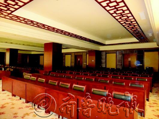 | 阳城国际大酒店总经理邢伟良接受记者采访。 |  | 阳城国际大酒店大厅一角。 |  | 阳城国际大酒店会议室。 |  | 荷塘渔村直接向顾客展示新鲜的鱼等食材和配料。 本报记者 李运恒 摄 |