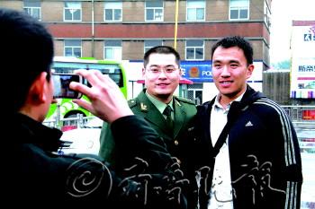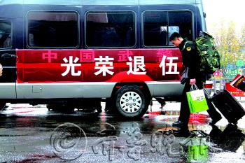 | 退伍仪式上向退伍老兵致敬。 |  | 一名退伍战士从部队送行的专车上走下。 |  | 带点日照特产回家乡。 |  | 退伍老兵登上回家的列车。