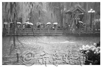 小雪时节,一场小雨为天下第一泉——趵突泉增添别样景致,游人手持的各色花伞成为公园里的一道美丽的风景线。 姜美荣 摄