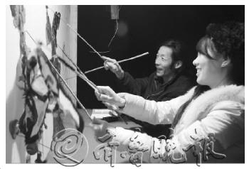在泰安太阳部落景区民俗街内,民间艺人正在后台进行皮影戏表演,惟妙惟肖的动作让游客忍俊不禁。