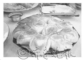 利津水煎包是用一个满月大的盘子盛装的,水煎包皆是圆柱形,齐齐地立着,像一顶顶厨师帽,皮表呈麦黄色。