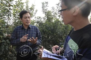 成立合作社带领村民共同致富。 |  | ▲苗庆山忙着为收购商采摘苹果。 |  | ▲小鸡仔,大效益。 |  | 冉堌镇党委书记王利军介绍苗楼村苹果种植概况。 |