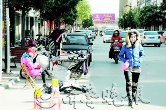 明明摆着禁止摆摊的牌子,摊主却视而不见。27日,记者在市中区吉品街北侧看到,就在禁止摆摊的牌子旁边,摊主却照样摆摊经营。不仅影响了过往的车辆,还让本来就拥挤的道路更加不畅。 本报记者 马明 摄影报道