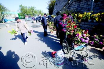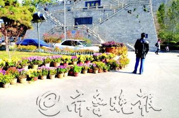 | 网上传播的济南市民“哄抢菊花”的照片,实际上是市民在管理部门的允许下,把菊展剩下的菊花再利用。 |  | 28日,一些菊花整齐地摆在解放阁北侧的广场上。 李师胜 摄 |