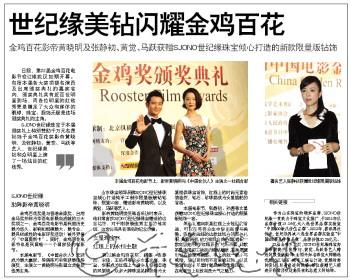 世纪缘美钻闪耀金鸡百花 金鸡百花影帝黄晓明及张静初、黄觉、马跃获赠SJONO世纪缘珠宝倾心打造的新款限量版钻饰 SJONO世纪缘 助阵影帝黄晓明 金鸡百花奖是与香港金像奖、台湾金马奖并称为华语电影最高成就的三大奖项之一,金鸡百花电影节是我国历史最为悠久、影响和规模最大、最专业、最具权威性的电影评奖活动!被外界誉为“中国奥斯卡”。同时,金鸡百花电影节也是我国唯一一个国家级的电影节。 本届电影节,《中国合伙人》无疑成为最大赢家,导演陈可辛荣获最佳导演奖,主演之一黄晓明与张国立共获最佳男主角。 山东珠宝领导品牌SJONO世纪缘珠宝倾心打造纯手工制作限量版镶钻钻饰,限量10套,赠送影帝黄晓明,以及黄觉、马跃等艺人。 影帝黄晓明接受笔者采访时表示,他非常喜欢SJONO世纪缘珠宝赠送的这套钻饰,对于刚获最佳男主角的他来说,这套饰品具有很高的纪念价值。 女星珠宝PK 红毯上的永恒主题 第22届金鸡百花奖,赵薇、张静初、宋佳、王珞丹等众多女星出席,珠宝、华服成为红毯上一道令人争相目睹的风景线。众多大牌珠宝品牌纷纷为女星提供珠宝首饰,红毯上的时尚元素愈演愈烈,钻石、珍珠都成为女星搭配的首选。 本届电影节,张静初、孙茜等女星获赠SJONO世纪缘珠宝倾心打造的限量版钻饰一套。 黑色礼裙向来是红毯上女性们的首选,可以在芸芸众生中穿出高贵与典雅。张静初选择的这款丝绒白领黑色礼服,典雅俏丽,魅力锁骨自然凸显。搭配一款高级定制的“红毯系列”钻石吊坠,此款吊坠选用切工精密的细钻镶嵌,完美展现出钻石的璀璨质感。手上所戴一款小巧戒指,辅以简约而不简单的耳饰,以及雅致妆容,尽显时髦品味和优雅风韵,在电影节上绽放高贵大气之魅力。 本届金鸡百花电影节上,影帝黄晓明与《中国合伙人》主演之一杜鹃合影 日前,第22届金鸡百花电影节在江城武汉如期开幕。包括本届各大奖项提名演员及出席颁奖典礼的嘉宾在内,颁奖典礼共有近百位明星到场,而各位明星的红毯秀更是赚足了大众和媒体的眼球,珠宝、服饰无疑是这场颁奖典礼的主角。 SJONO世纪缘珠宝于本届颁奖礼上特别赞助千万元名贵钻饰予金鸡百花奖影帝黄晓明,及张静初、黄觉、马跃等艺人,世纪缘美钻和众明星上演了一场炫目的红毯秀。 著名艺人张静初获赠世纪缘限量版钻饰 作为山东珠宝的领军品牌,SJONO世纪缘一直致力于珠宝文化推广,于2011年以品牌价值18.16亿元入选世界品牌实验室“中国500最具价值品牌”。2013年,喜讯再次传来,世纪缘再次入选世界品牌实验室“中国500最具价值品牌”,品牌价值30.25亿元。 22届金鸡百花奖,SJONO世纪缘珠宝向影帝黄晓明、张静初、黄觉、马跃等艺人赠送的限量版钻饰,由国外知名珠宝大师精选优质切工钻石,纯手工镶钻打造,优雅时尚的设计、尊贵舒适的风格,每位获赠艺人都表示非常喜欢这套具有纪念意义的钻饰。 相关链接