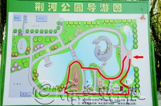 | 图为荆河公园平面图,图中红色区域为寻宝区。 |
