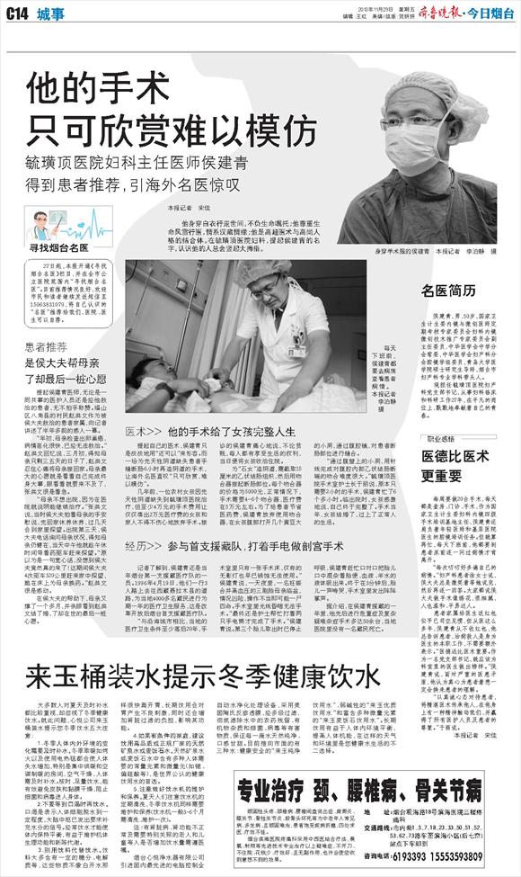 毓璜顶医院妇科主任医师侯建青得到患者推荐,引海外名医惊叹