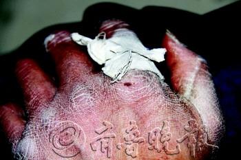 ▲冬天一到,建筑工的手上经常裂出血。