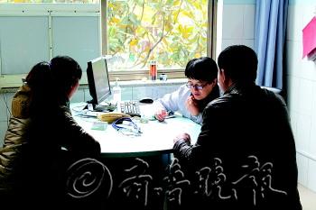 | 两位市民在医院呼吸内科咨询。 本报见习记者 路伟 摄 |