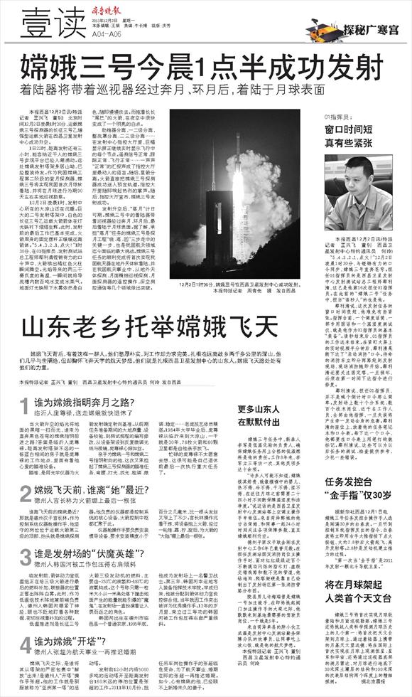 嫦娥三号今晨1点半成功发射
