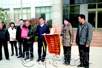 事故发生后,菏泽市食品药品监督管理局组织党员干部为受灾家庭募集,很快就募集资金10600元。同时,驻村“第一书记”邵立东又从市区两级慈善总会、市区两级红十字会为刘朝江一家募集救助金12000元。12月3日上午,刘朝江来到菏泽市食品药品监督管理局,送上感谢信和锦旗。本报记者 董梦婕 摄影报道