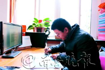 有的读者特意赶到评选办公室现场填写“地标酒”选票。朱頔 摄 本刊记者 朱頔