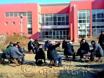 4日,在龙奥新居社区,多名老人聚在一起晒太阳聊天,他们身后就是闲置5年的老年人活动中心。像这样闲置的社区公共建筑,在小区里有19处之多,包括社区医院、停车场、菜市场等。据了解,这些公建不能投入使用,涉及到产权交接等多方面问题。 本报见习记者 王红星 摄
