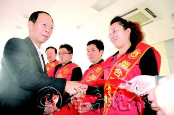 烟台市政府特邀咨询、市慈善总会会长王国群为五星级慈善义工代表颁发证书。 本报记者 韩逸 摄