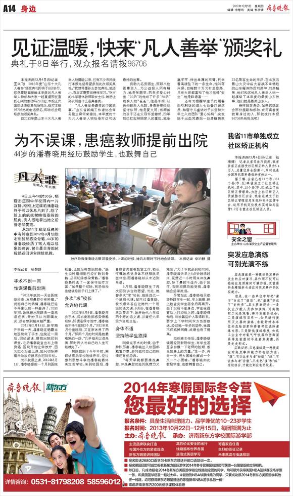 为不误课,患癌教师提前出院