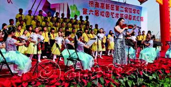 高新区第二实验小学小提琴团队在艺术节上表演精彩节目。