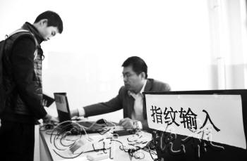 | 考生输入指纹确认个人信息(资料图)。本报记者 李岩松 摄 |