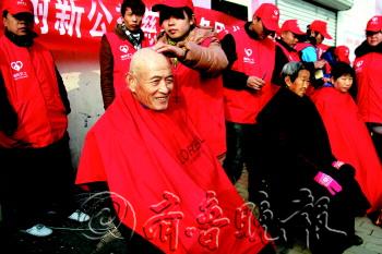 帮老人理发。