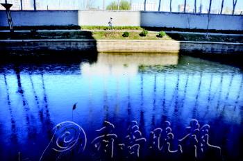 结冰的水面闪耀着一丝清冷。 时间:11月28日 地点:董子文化园
