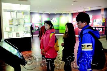 | 展区内,大学生们正在认真参观。 |  | 互动体验区内,大学生们正在现场体验。 |