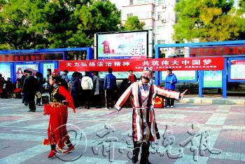 本报12月5日讯(记者 赵发宁 通讯员 张永芳 葛善荣) 12月4日是全国法制宣传日,当天下午2点30分,日照街道金阳社区广场上载歌载舞,热闹非凡,以“大力弘扬法治精神,共筑伟大中国梦”为主题的法制宣传活动在此举行。 据金阳社区主任葛善荣介绍,此次活动由金阳社区居委会、街道司法所、曲阜师范大学法学院共同举办。“这次活动主要为了更好地宣传法律,普及法律知识,服务居民,引导居民在遇到困难和问题时运用法律手段维护自身合法利益,同时提升法律援助制度的知晓度,让更多的居民了解法律援助制度。“葛善荣说。 记者在活动现场看到,社区老年舞蹈队的表演吸引了不少市民前来观看。曲阜师范大学法学院的大学生也为市民带来了自编自演的喜剧《天下无贼》,让市民在欢乐中认识如何提高防盗意识。 “《天下无贼》的主要是将警察扮演的傻根怀揣数千元工资来到火车站坐车,在火车站遇到了形形色色的人,他们都对傻根的钱心怀不轨,最后在小偷得手的情况下,傻根亮明身份,将小偷抓了起来。”曲师大法学院学生说。 金阳社区还通过张贴法制教育手抄报并配专人讲解的方式,为前来观看的居民宣传法律知识。活动当天,共提供免费法律咨询服务26次,发放普法宣传材料400余份。